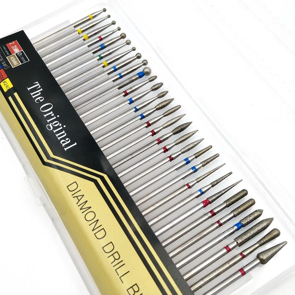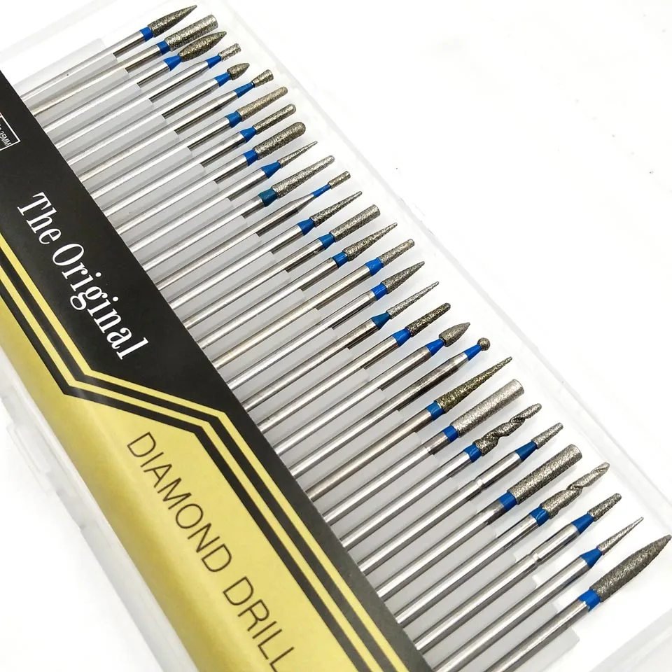 HYTOOS 30Pcs/set Diamond Drill Bit Set 3/32" Rotary Cuticle Burr Manicure Bits Electric Drill Acces